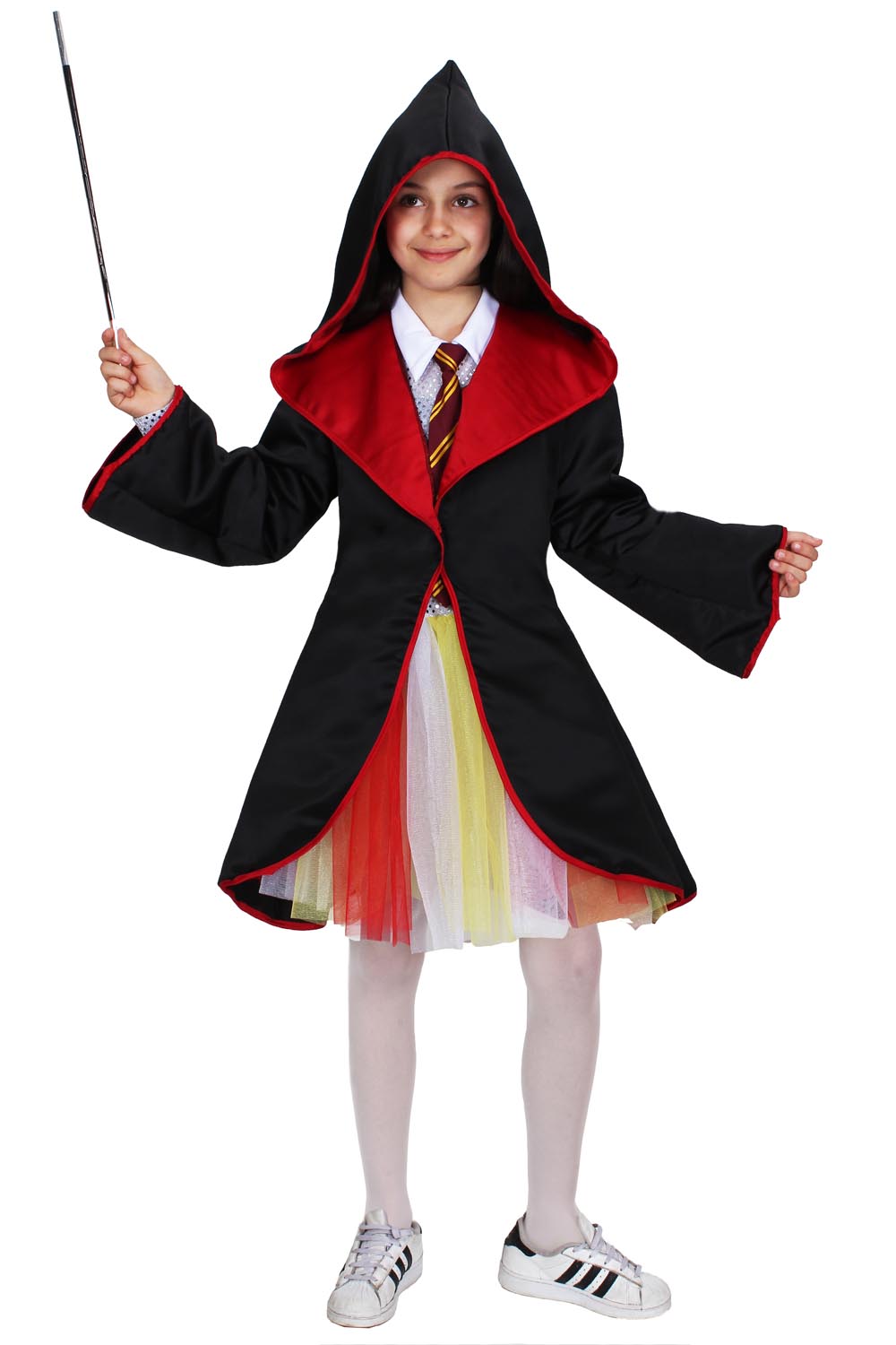 Il costume Maga apprendista è disponibile in 5 taglie a partire da S 5/6 fino a XXL 12/13 ANNI.Il costume di Maga apprendista lo troverai nel pratico scatolo 9x41x30 in cui troverai i seguenti elementi: toga con cappuccio, vestito, bacchetta, cravatta, occhiali e fouson.Il costume è realizzato in tessuto: doppio raso, paillettes, tulle, maglina.Designer italiano: Il vestito con colletto a camicia è arricchito sul davanti da tessuto in paillettes argento e comprende di una gonnellina in tulle rosso, arancio e bianco. Presenta poi, una toga con cappuccio nera e rossa. Il costume si completa con fouson bianco, occhiali, cravatta e bacchetta.Costume perfetto per feste di Compleanno, Travestimenti, feste a tema, Cosplay, giochi di finzione, giochi di ruolo, Carnevale e sfilate di Carnevale.Avvertenze indossare sotto visione di un adulto.Istruzione lavaggio: lavare a mano a bassa temperatura, lavare le parti separatamente, non strizzare, stirare a 110 gradi massimo a rovescio. HERMIONE, ERNIONE, magia, mago, harry, potter, herry potter, harry, herry, maga,maghibambini, FUORICATALOGO, WizardingWorld, HARRYPOTTER, HERRYPOTTER